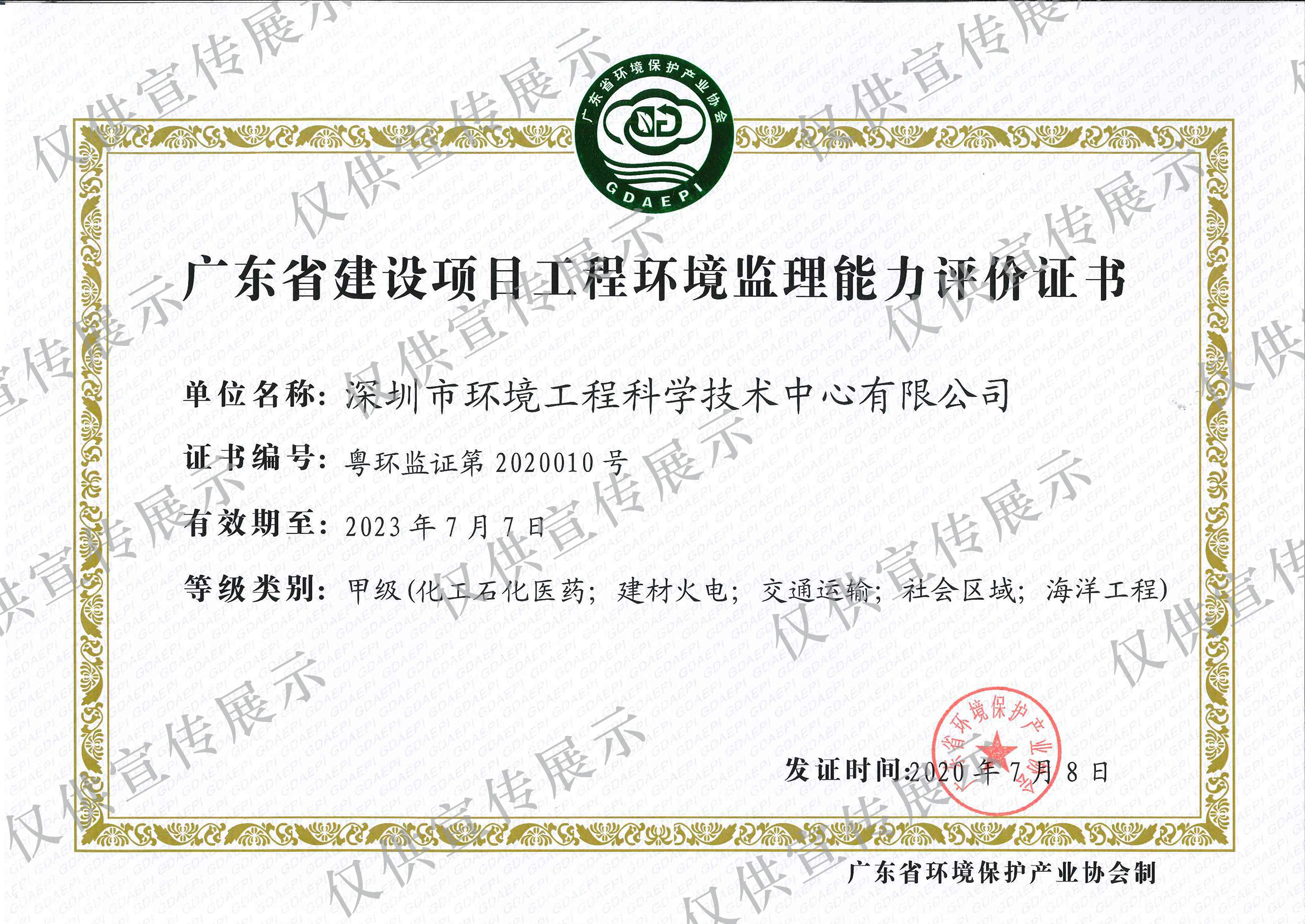 廣東省建設(shè)項目工程環(huán)境監(jiān)理能力評價證書
